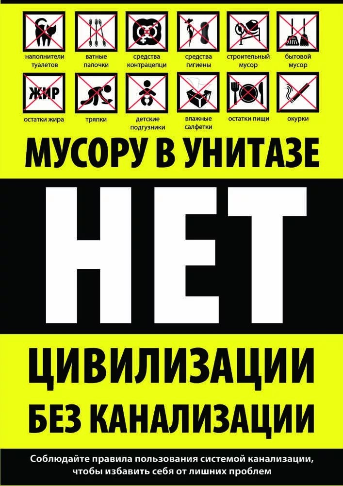 Только продукты жизнедеятельности организма должны попадать в бытовую канализацию. Всё остальное необходимо отправлять в мусорное ведро!