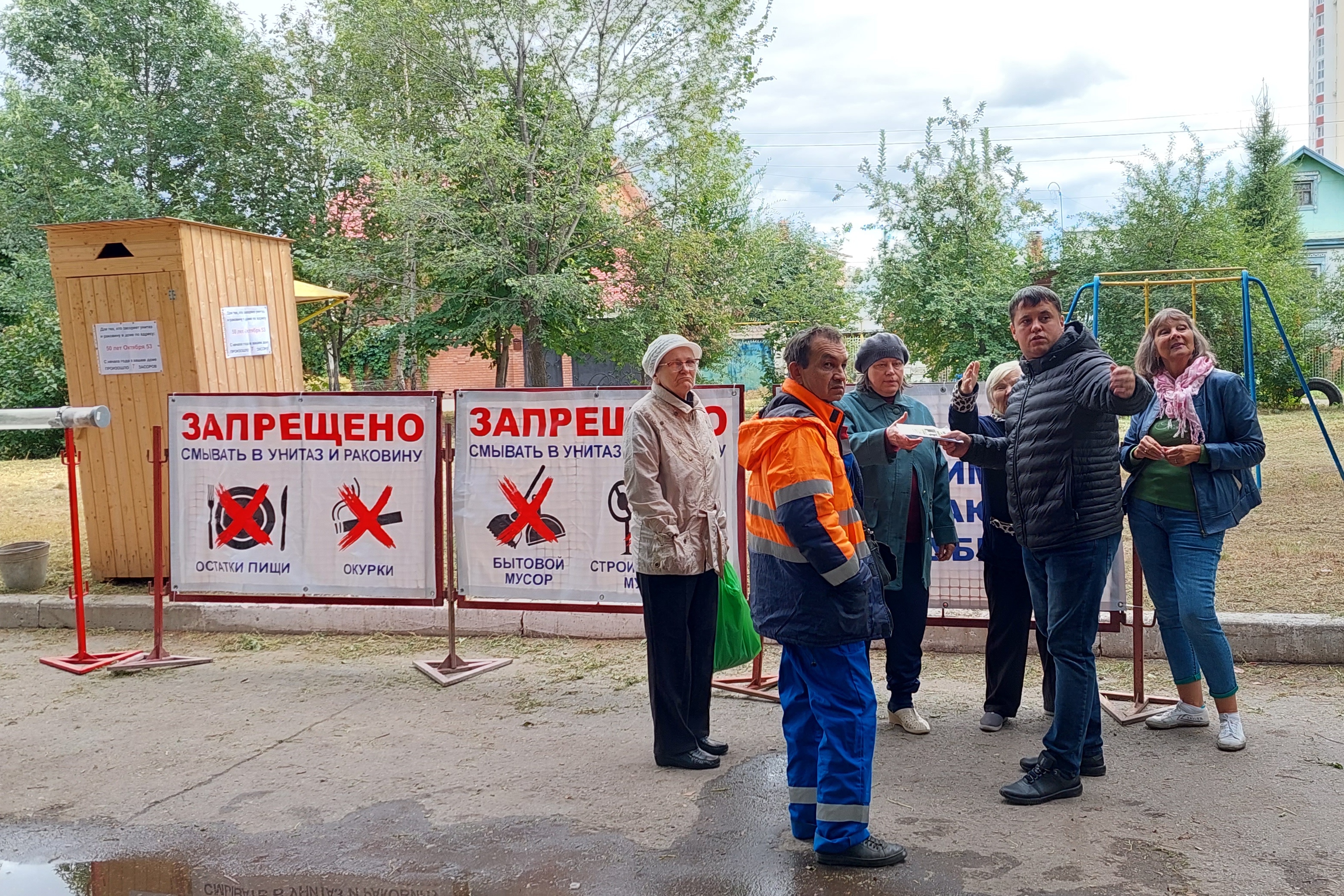 В этот раз работники «РКС-Тольятти» напомнили правила пользования канализацией жителям очередного дома-грязнули. По адресу ул. 50 лет Октября, 53 только в этом году аварийные бригады выезжали уже 7 раз. В этот раз прибыли без вызова, но с наглядной агитацией: деревянным туалетом, которым придётся пользоваться, если сети канализации выйдут из строя из-за постоянных нарушений, и яркими плакатами.