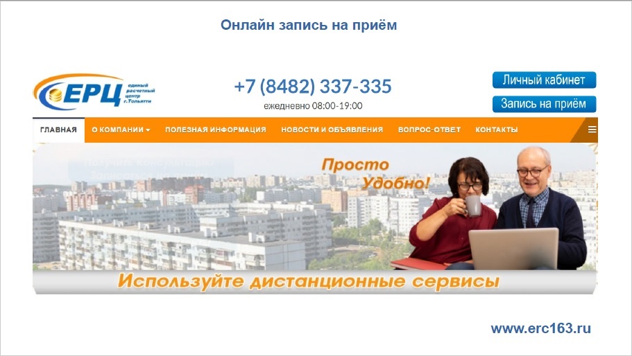 Онлайн-сервисы продолжают развиваться и делают жизнь наших современников легче. С 13 сентября заработала онлайн-запись на приём в ЕРЦ г.Тольятти. Сервис устроен таким образом, что им может воспользоваться даже самый малоопытный пользователь интернет-услуг. На сайте www.erc163.ru на главной странице появилась кнопка «Запись на приём», она открывает специальное окно (прямая ссылка https://erc163.minta365.ru/). Предварительная запись позволяет выбрать удобное время и избавит от очередей. По ссылке ЕРЦ г. Тольятти - Участки обслуживания (erc163.ru) расположена информация о правилах приёма и всех способах записи.
