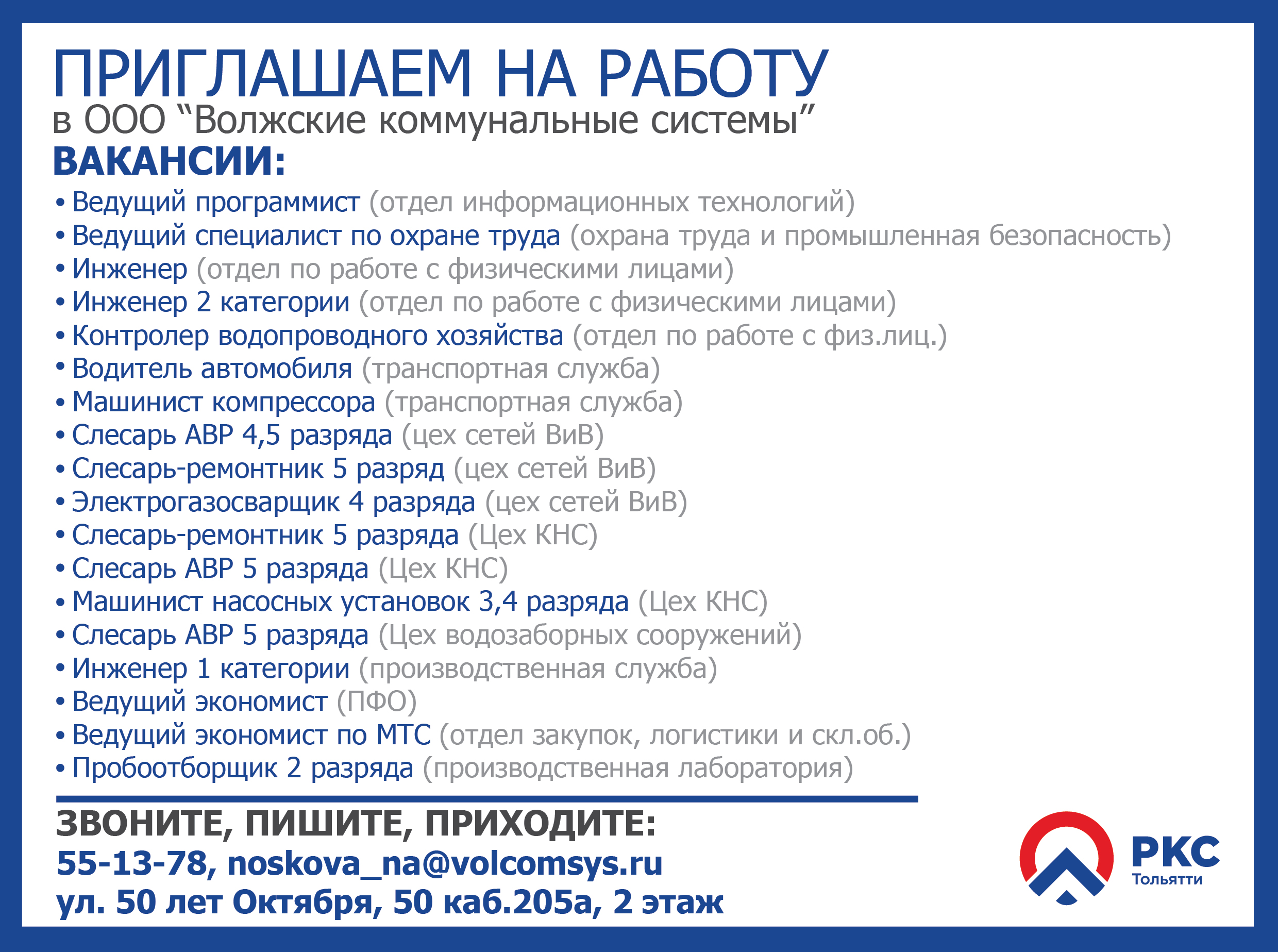 Если Вы ищете интересную работу, дружный коллектив - добро пожаловать в ООО "Волжские коммунальные системы"!
