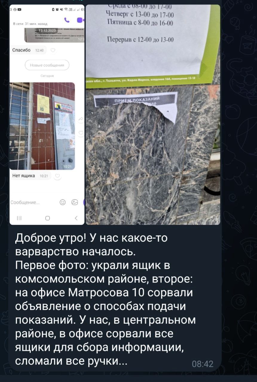 В выходные, в Центральном и Комсомольском районах города в самый разгар подачи показаний счетчиков, неизвестные украли несколько ящиков для приёма информации. Остается только гадать: был ли это умышленный акт вандализма и срыв сбора показаний, либо «весеннее обострение» отдельных граждан. Кто и зачем совершил данное преступление – неизвестно.