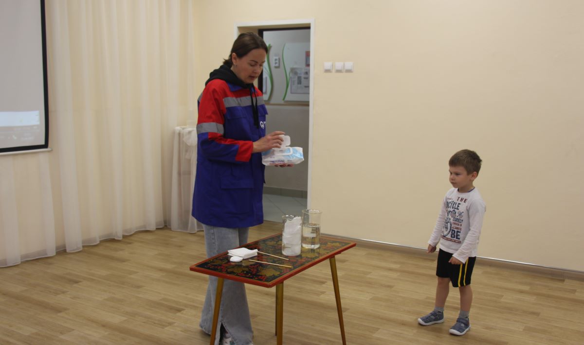 В игровой форме детям показали, какие бытовые отходы — влажные салфетки, ватные диски или остатки пищи — нельзя смывать в канализацию.